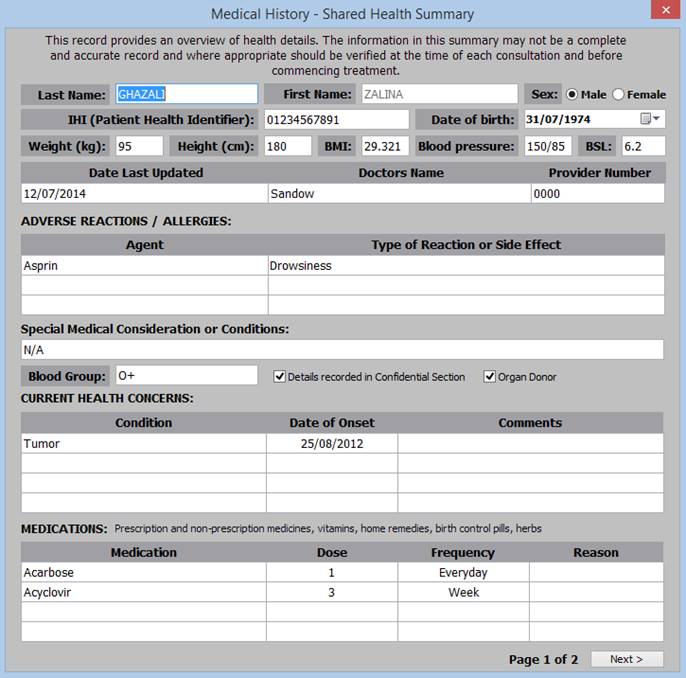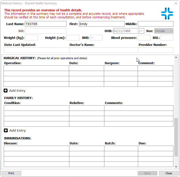 • Patient PIN is required to access or save Confidential Medical Summary.