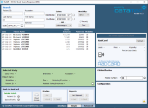 RadQR™ will be the process that most Radiology practices will use to load image data onto the RadCard™.  RadQR™ has powerful functionality to search, select (including multiple studies), validate patient identity and load images onto RadCard™.